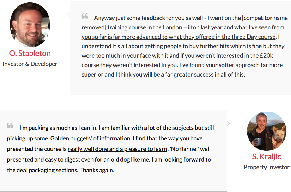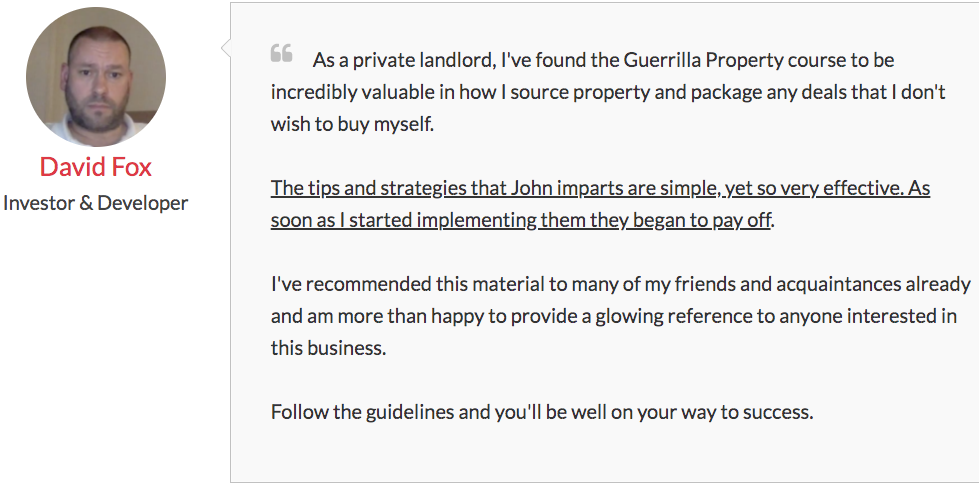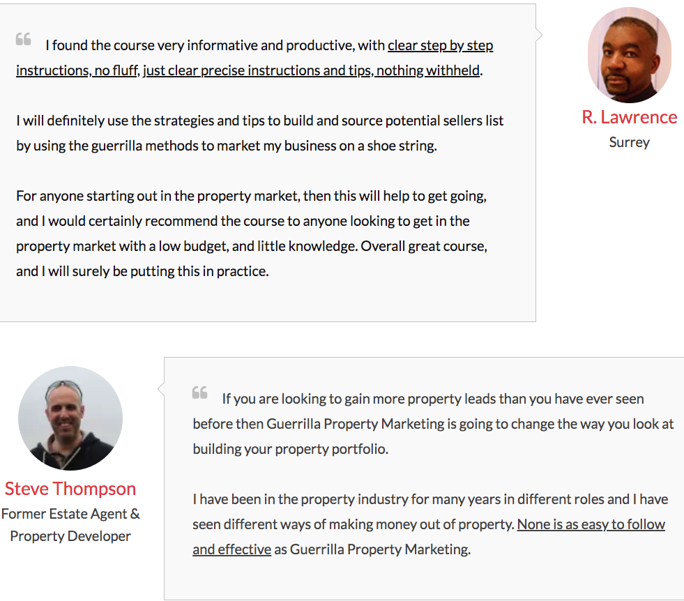 Testimonials for Guerrilla Property Investing program