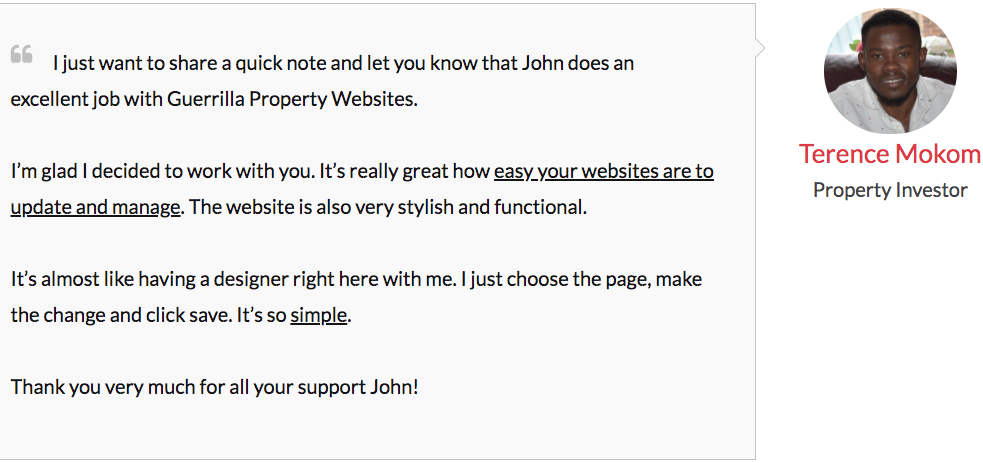 Testimonials for Guerrilla Property Websites platform